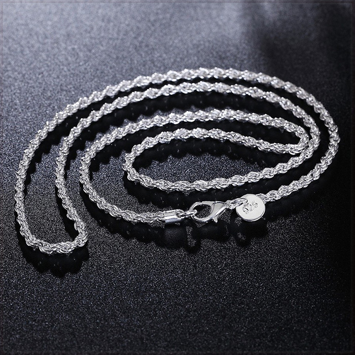 - [NECKLACE] 925 Sterling Silver Plated Rope Chain スリム ツイスト ロープ チェーン シルバー ネックレス 2.8x500mm (9.5g)