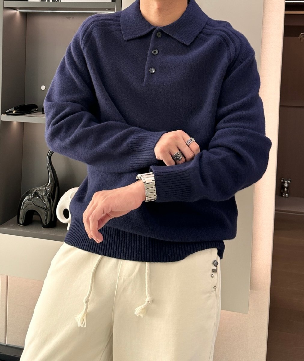 - ネイビーL【送料無料】Loro Pianaロロピアーナメンズ ウール ポロニットセーター、クラシックデザイン、秋冬