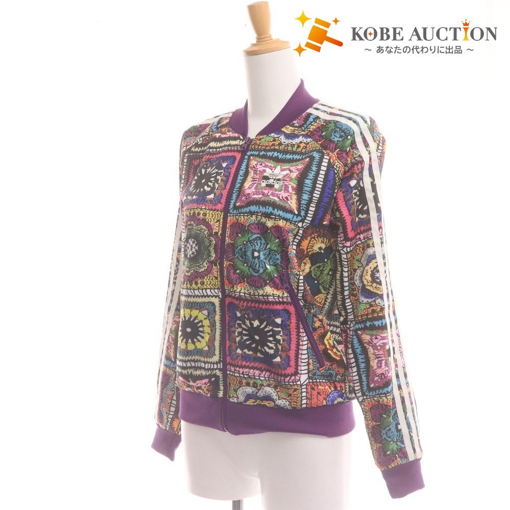 > ■ アディダス ジャージ ブルゾン アウター ジップアップ 総柄 ロゴ レディース L パープル系
