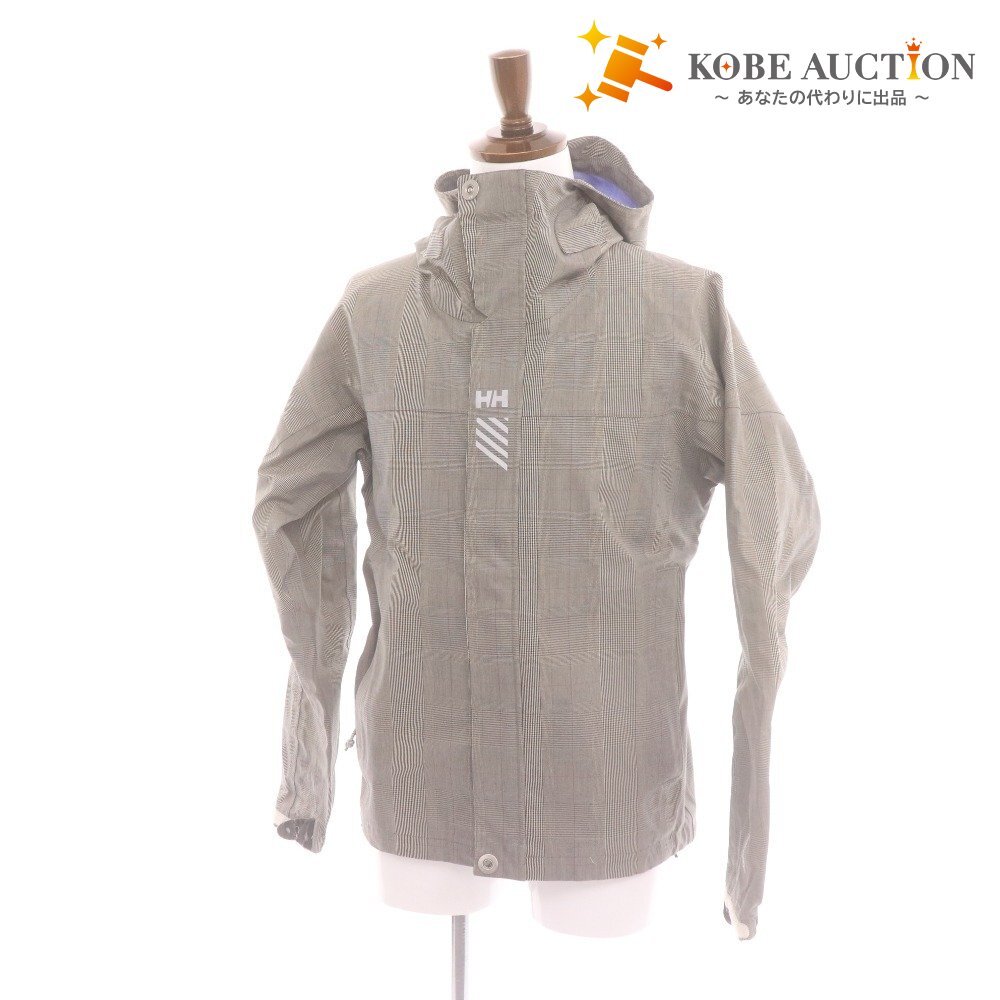 > ■ HELLY HANSEN ヘリーハンセン レインコート ジャケット 長袖 アウター フード チェック柄 ファスナー 防水 雨具 メンズ M ベージュ系