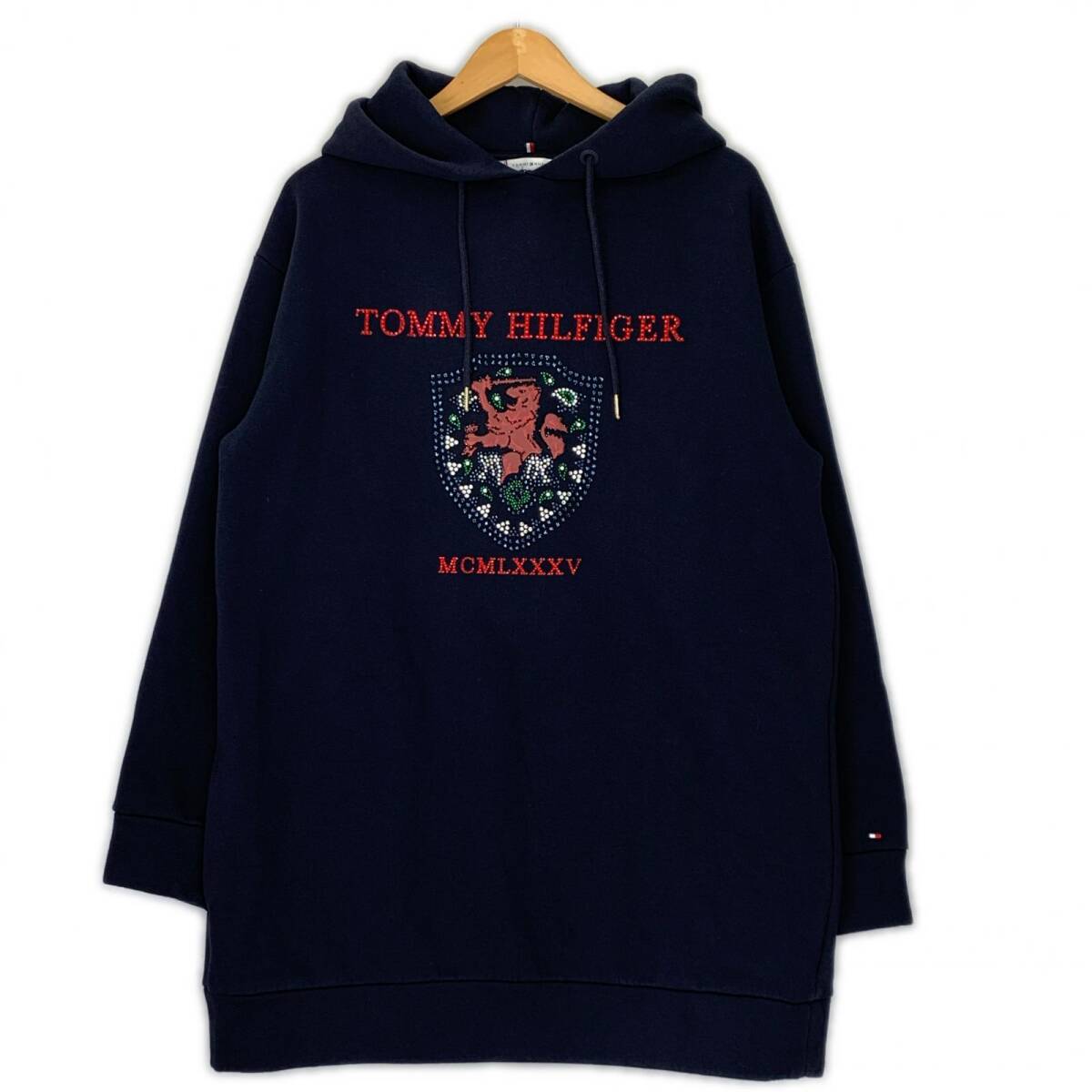 - TOMMY HILFIGER トミーヒルフィガー 裏起毛 ストーン パーカー sizeS/ネイビー