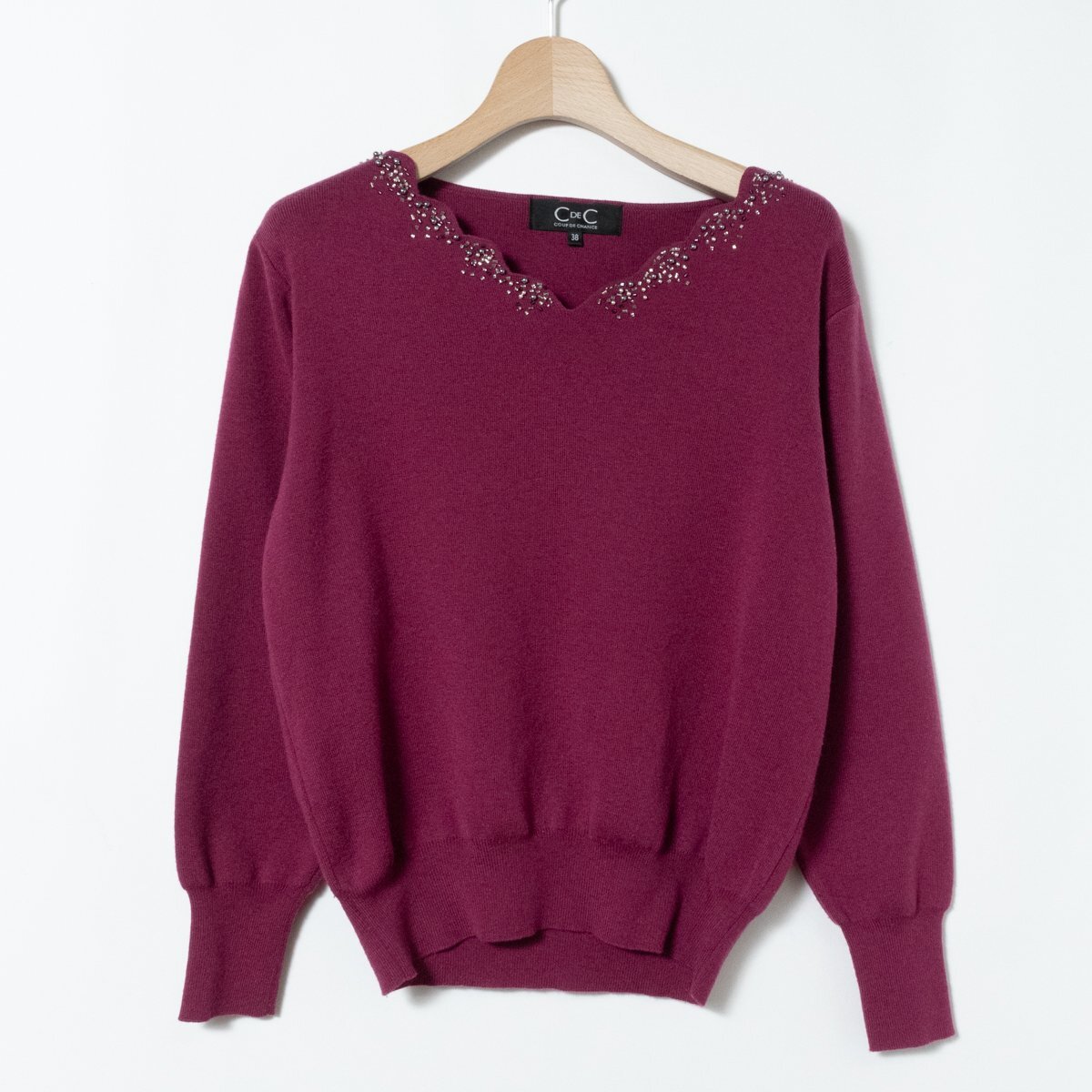 - COUP DE CHANCE クードシャンス レディース 長袖 ニット セーター Vネック サイズ38 赤紫 ポリエステル ナイロン アクリル 毛 ビーズ 上品