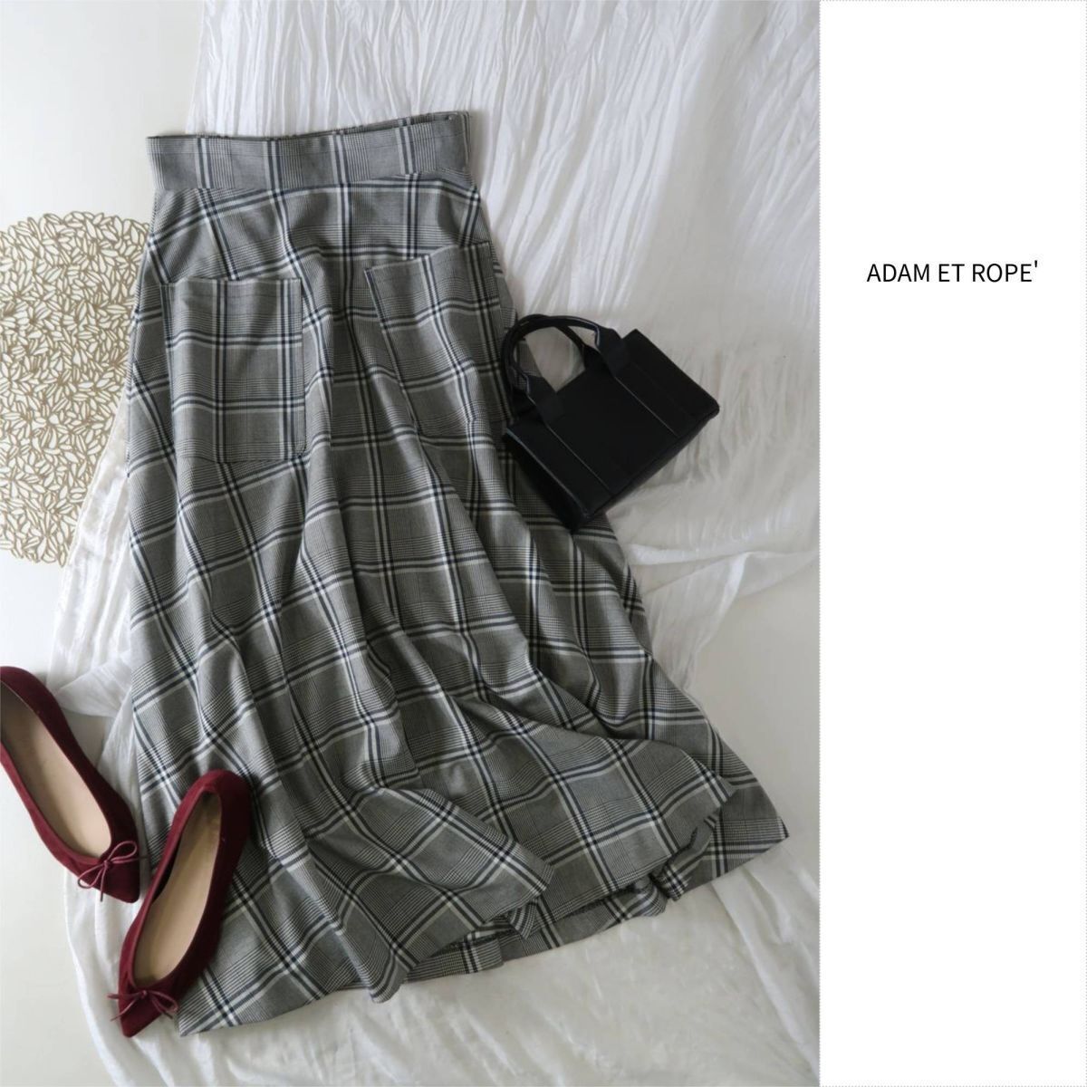 > 1.4万☆超美品☆アダムエロペ Adam et Rope'☆洗える チェック柄 ポケット付ロングスカート 36サイズ☆M-B 6061