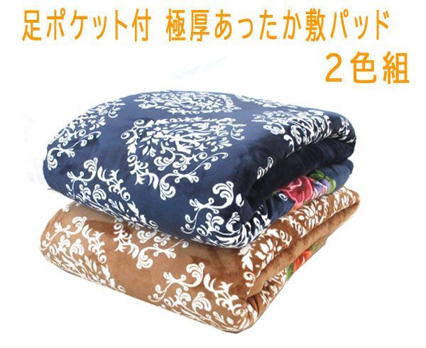 > 送料300円(税込)■vc868■(0925)足ポケット付 極厚あったか敷パッド花柄2色組(SD)(柊)【シンオク】