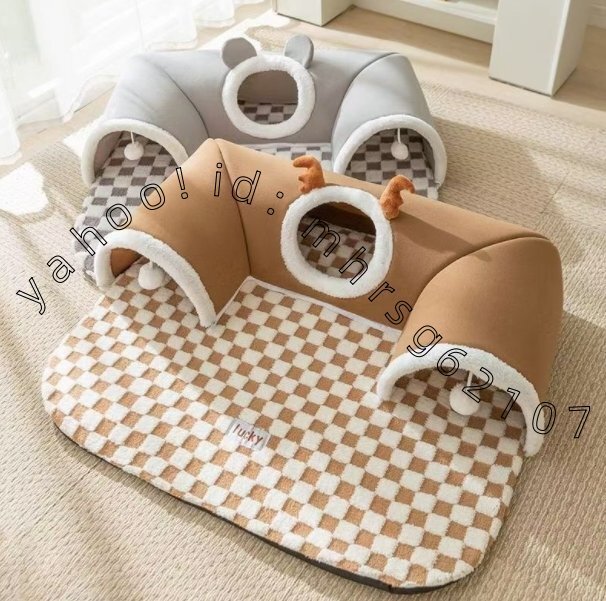- 折りたたみ猫トンネル 猫ベッド付き寝窩 通年使える猫のおもちゃLサイズ