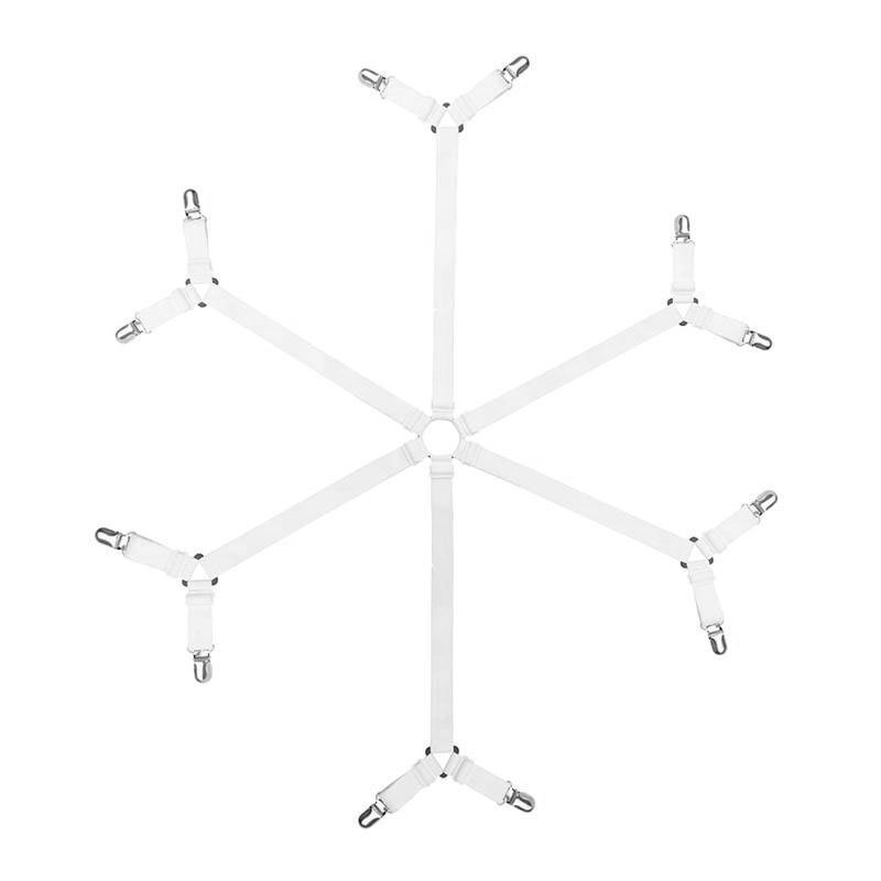 > 送料0円 ベッドシーツクリップ [ホワイト] シーツクリップ 調節 ズレ防止 ズレ落ち防止 滑り止め ゴムバンド ベッドシーツ 6面 簡単取付