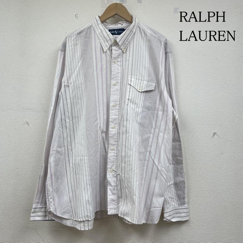 > ラルフローレン 長袖 ストライプ柄 3点留め ボタンダウン マチ付き シャツ ブラウス XXL