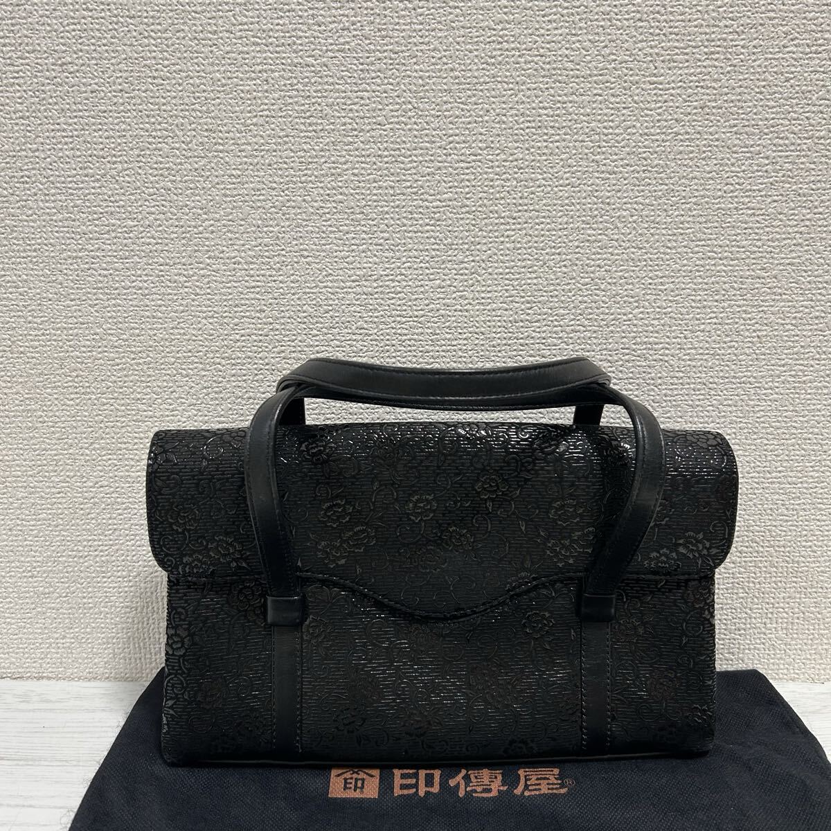 > 印傳屋 印伝屋 INDEN-YA インデンヤ レディース ハンドバッグ フォーマルバッグ パーティーバッグ 鹿革 本革 レザー 黒色 ブラック 高級