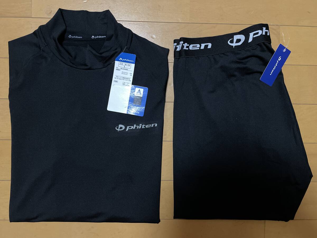 - 新品未使用 送料込み M phiten ファイテン ハイネック長袖インナー ロングタイツ 上下 アクアチタン リラックス ブラック 黒 即決