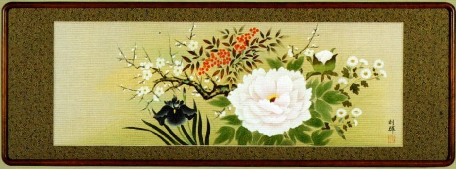 > ・作者名:北沢利輝 画題:「四季草花」・技法:欄間額 日本画(直筆)〈156〉(H1-R4-6-25-85.8)