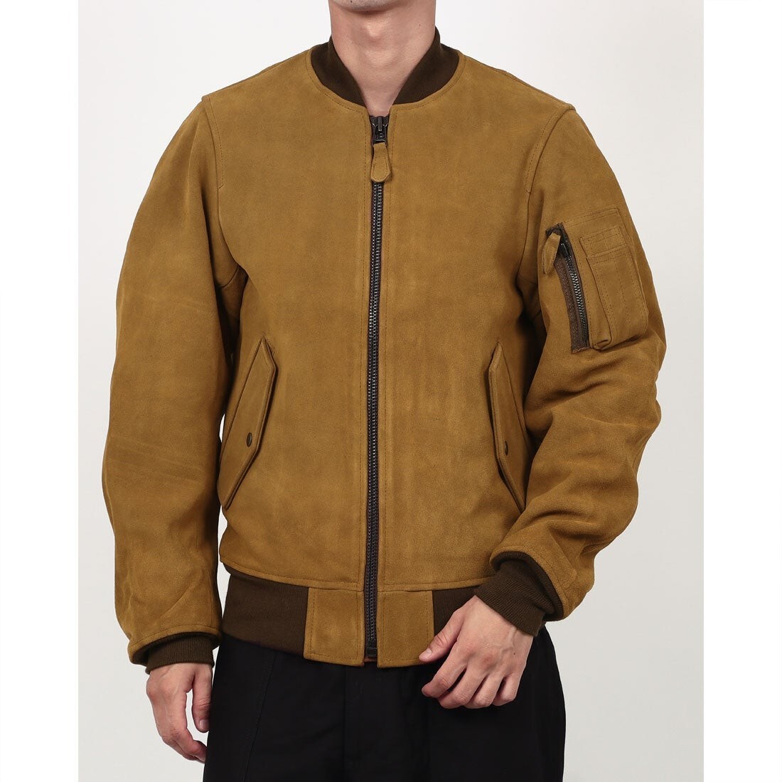 - 最値!新品!定43780円!名機復刻!ヘビーカウスウェードファブリック!ヒューストン(HOUSTON)MA-1 ジャケット!キャメルブラウン!茶色 Mサイズ
