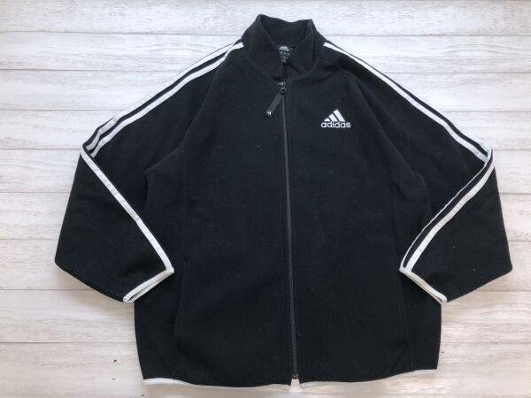 > adidas アディダス スポーツ アウトドア トレーニング ジップアップ 袖ライン フリース ジャケット キッズ 子供服 大人も◎ 160 黒/白