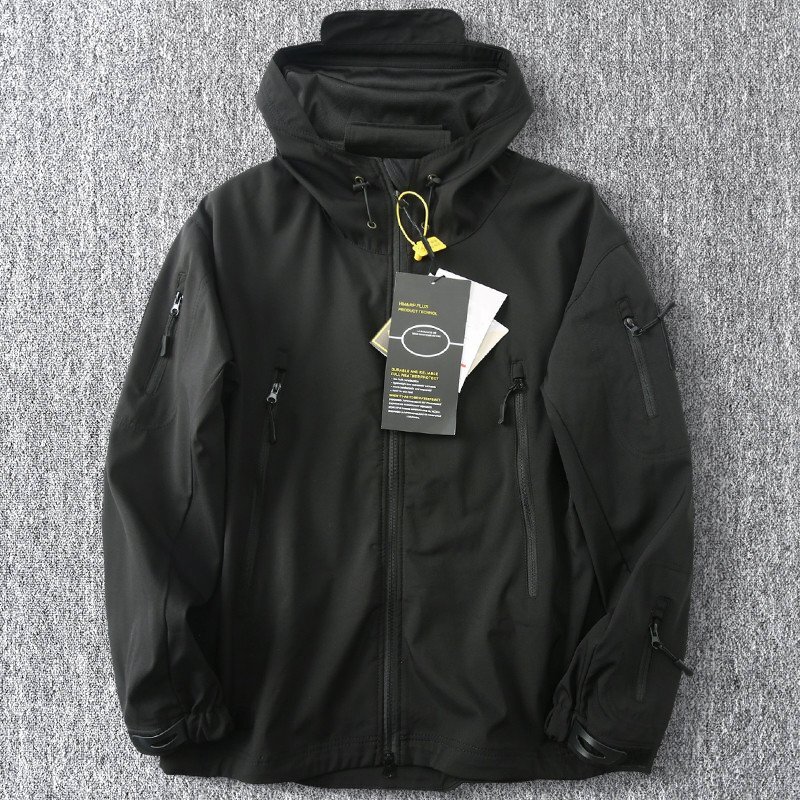 - 新品 国内未販売 ソフトシェルジャケット アウトドア 裏起毛 フード付き 防風 多ポケット マウンテンパーカ メンズ ジャケット 黒 T7023-XL