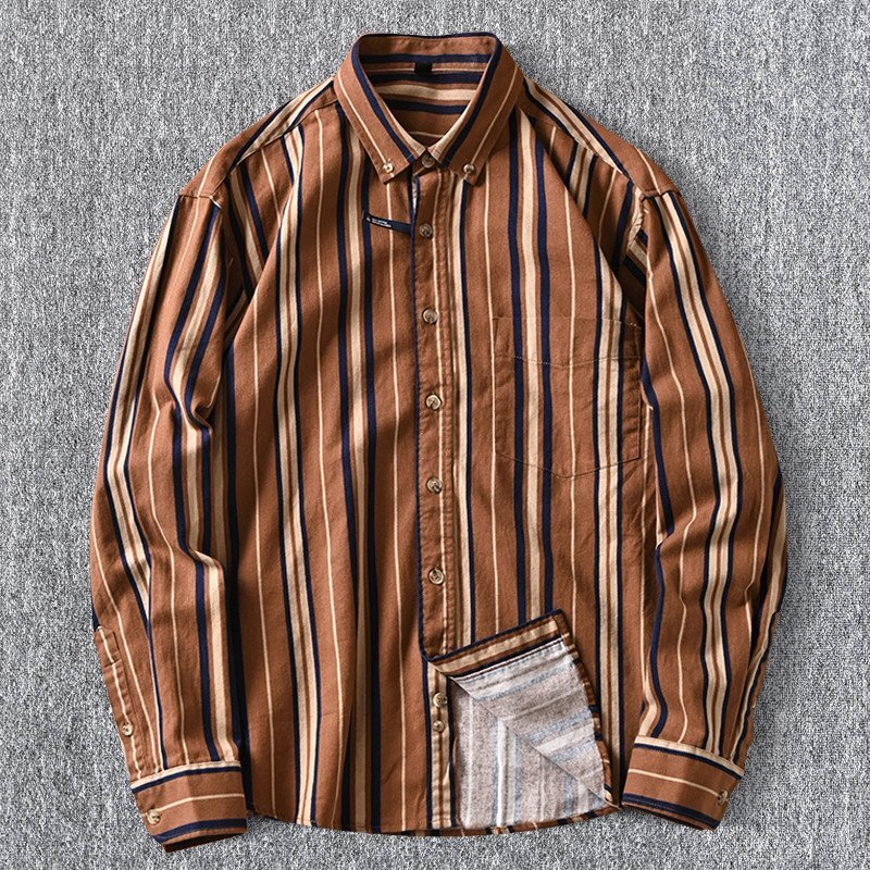 - 高品質 新品 DCKMANY メンズ長袖シャツ ヴィンテージカラー 縦縞 加工起毛 純綿 快適な着心地 春夏 カジュアル/カフェ色T5040-XL