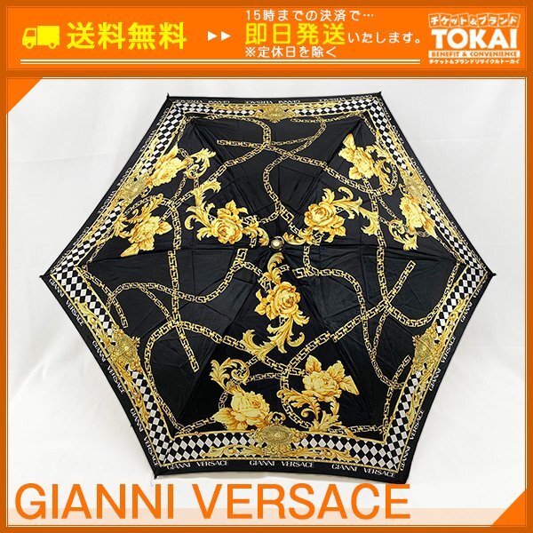 > ★SE09 [送料無料/中古品] ジャンニヴェルサーチ GIANNI VERSACE 折りたたみ傘 ブラック イエロー