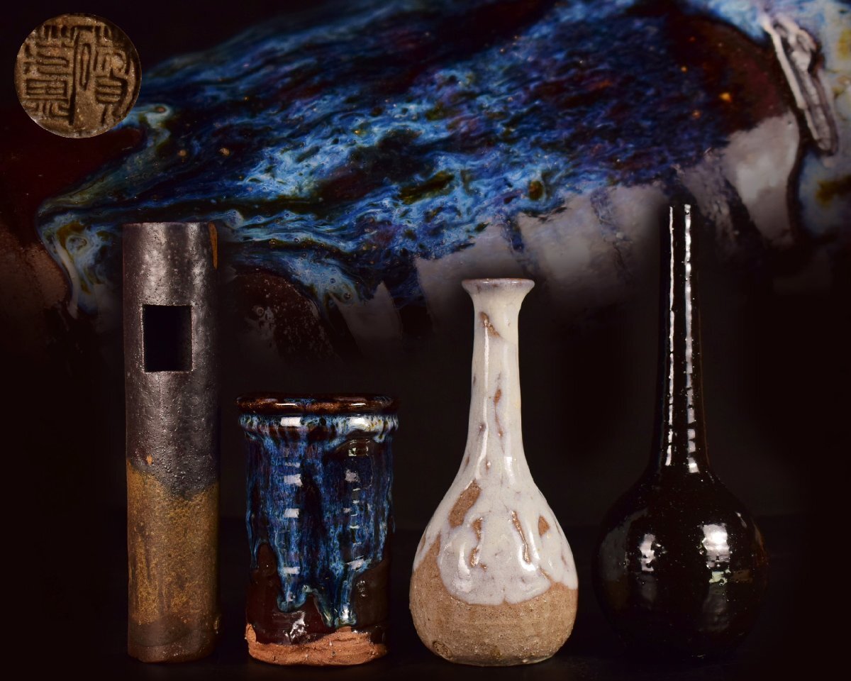 X135 【泉美】鶴首 一輪挿し 花瓶 4点 掛花入 花生 花器拍卖