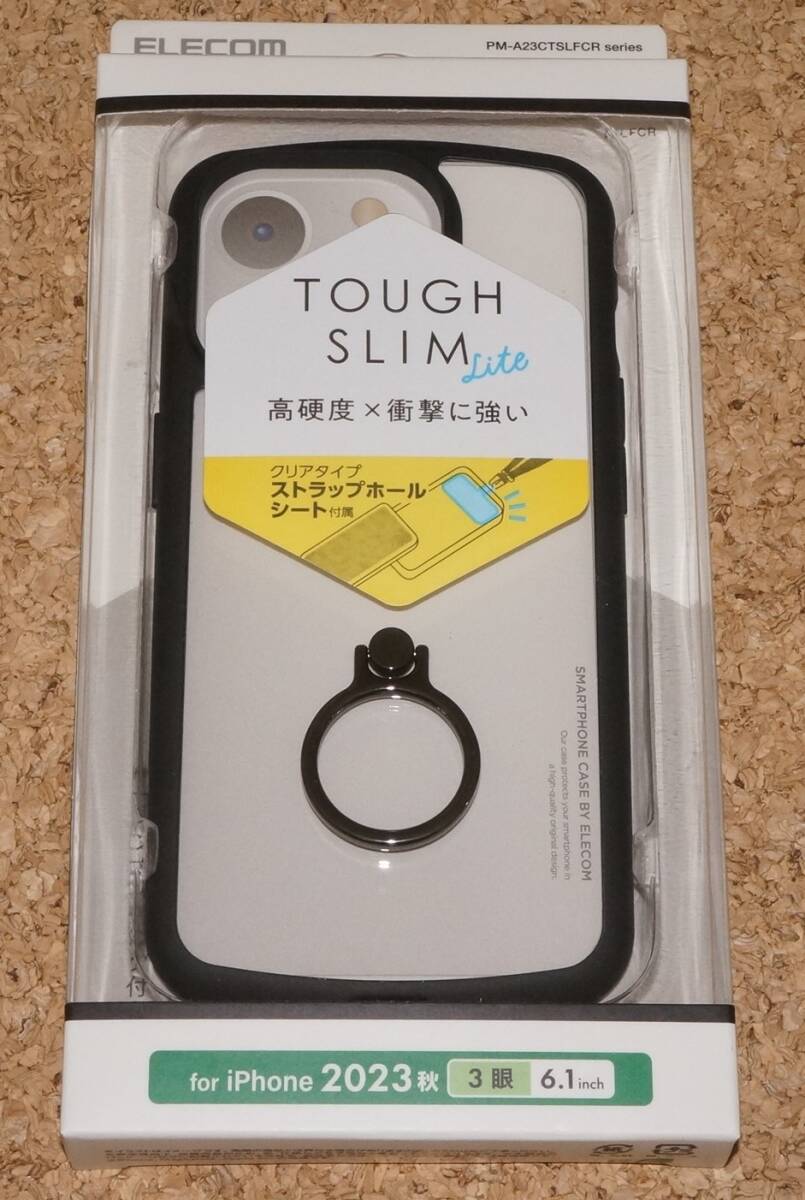 > ★新品★ELECOM iPhone15Pro TOUGH SLIM LITE リング付 ストラップホールシート付き ブラック