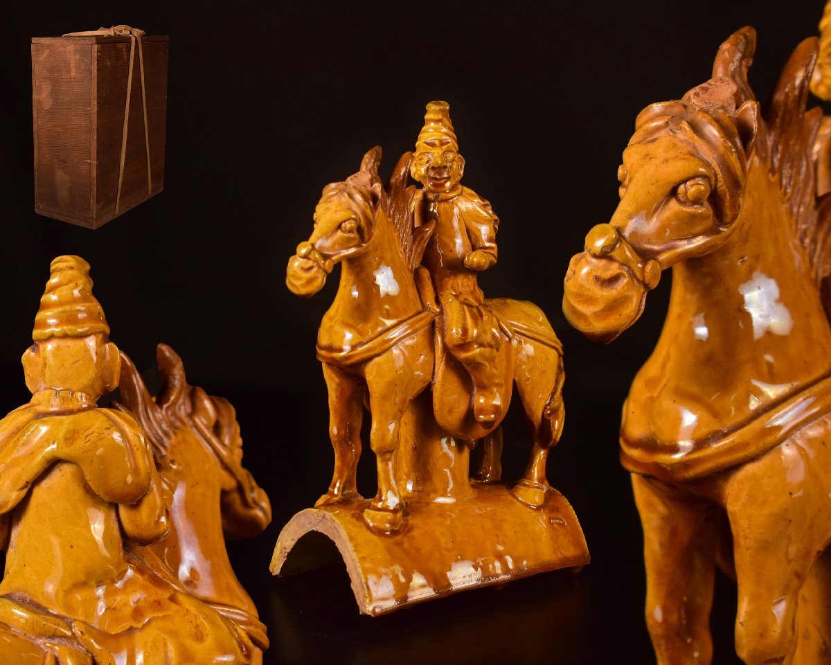 Z621 【泉美】中国 騎馬人物像 馬乗り武士 置物 オブジェ 木箱入拍卖