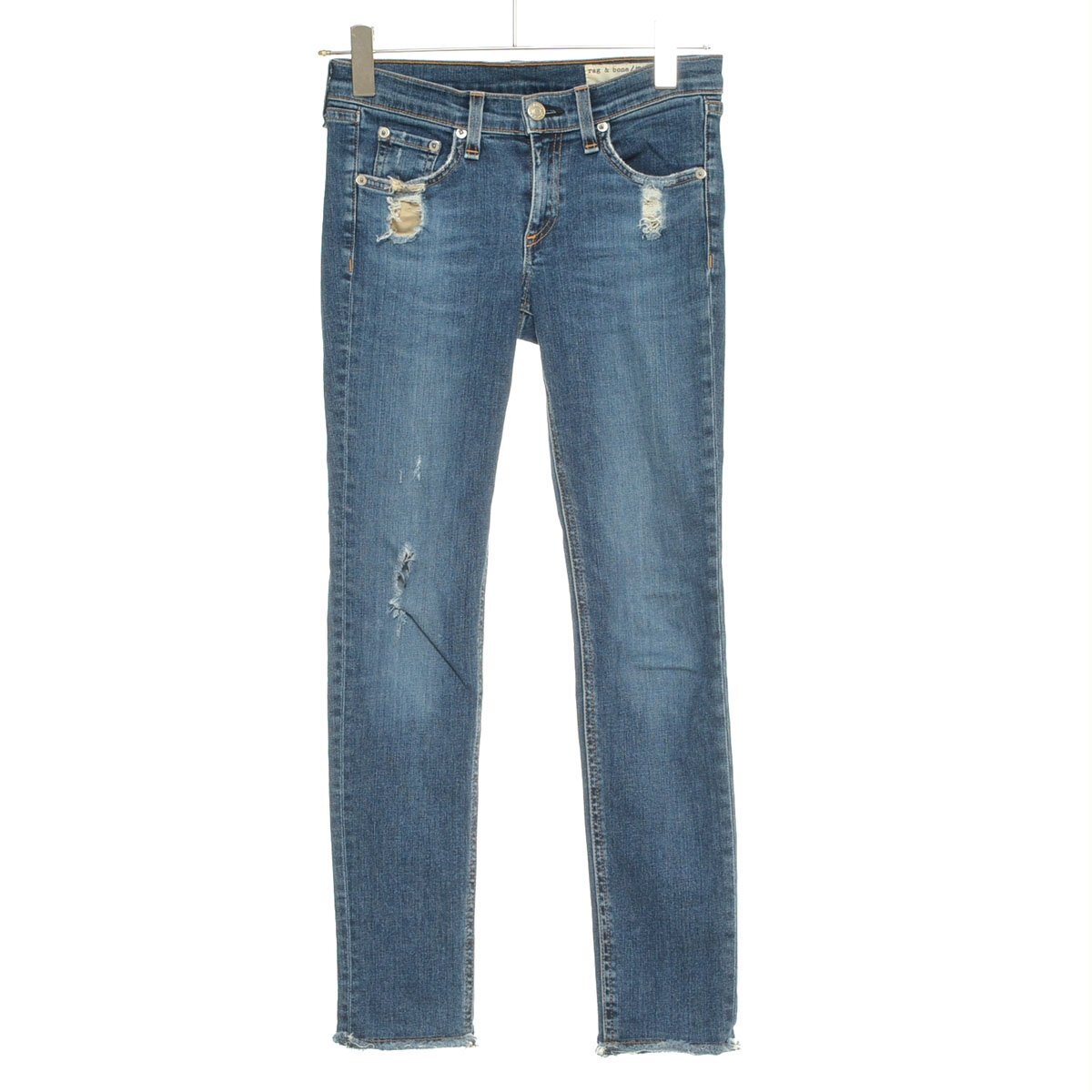> ◇566579 rag&bone ラグ&ボーン ◇デニムパンツ ダメージ加工ローライズスキニージーンズ サイズ25 レディース USA/米国製 ブルー