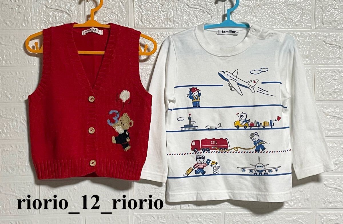 - 797 familiar ファミリア 男の子まとめ売り ウール入りファミちゃんベスト ロンT 2枚セット size90