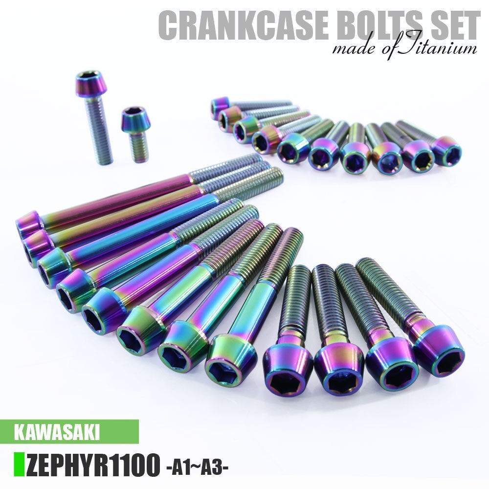 > チタンボルト カワサキ ゼファー1100専用 ZR1100 A1 A2 A3 クランクケース エンジンカバー ボルト セット 24本 焼き色 軽量化 カスタム