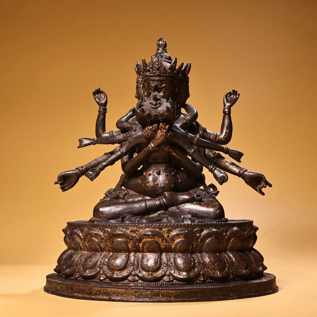 - ▼渡鶴羽▼H7106清時代 銅製高浮彫塗金十輪金剛仏像 細工彫刻★仏教古美術★仏像★細密細工★廃寺旧蔵★廃寺買出品
