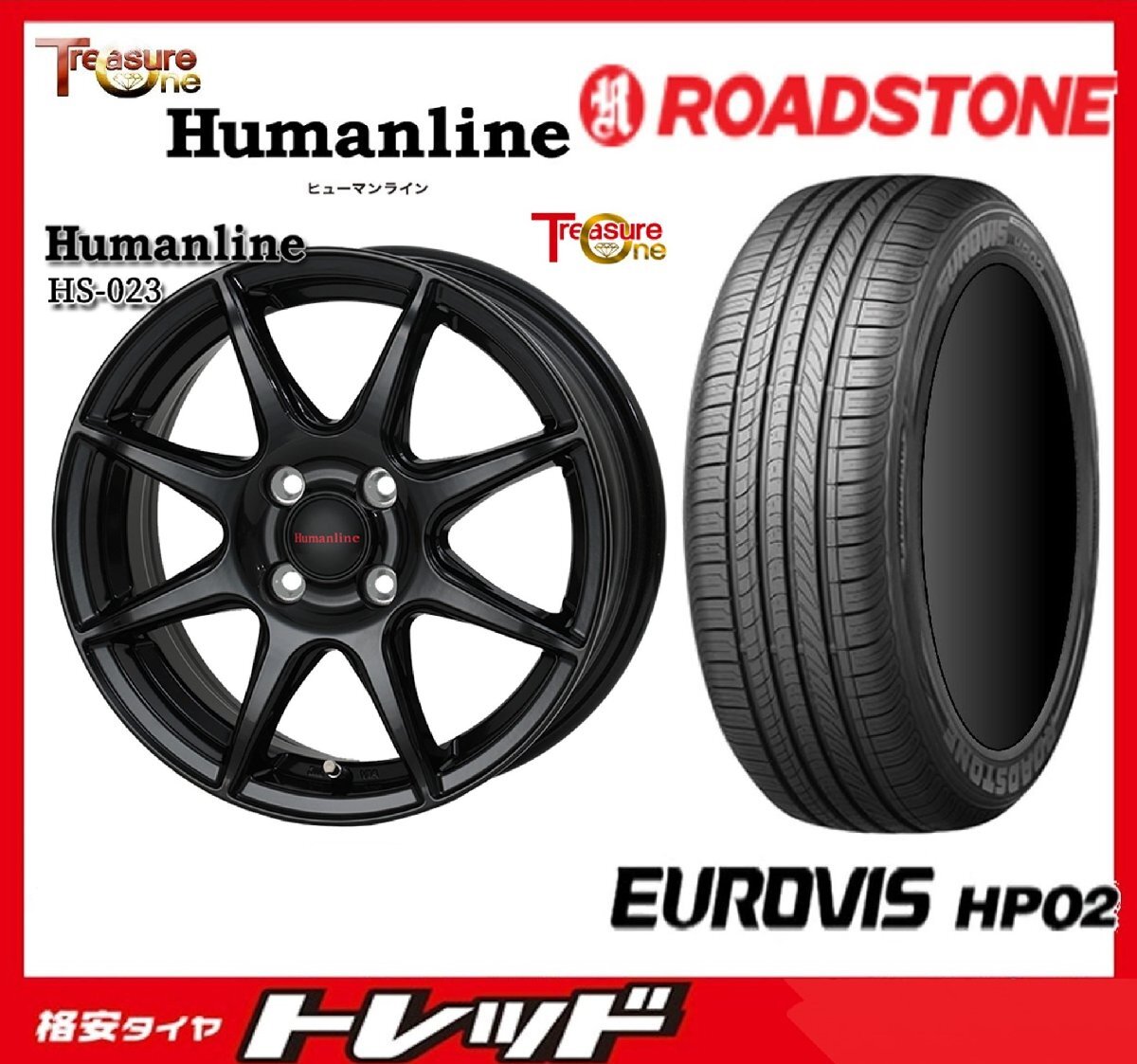 - 数量限定 2023年製)新横浜師岡店 新サマータイヤアルミ4本set Humanline HS-023 15インチ5.5J4穴100+43 ロードストーン HP02 185/65R15