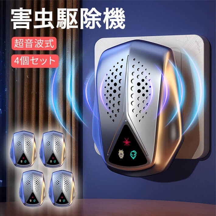 - 害虫駆除機 超音波 4個セット 電磁波 生物波 自動変換作動 3モード エミュレーション
