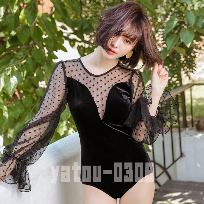 - H374 コスプレウェア シースルー ドット柄 長袖 ハイレグレオタード ベルベット生地 レースクイーン セクシーランジェリー