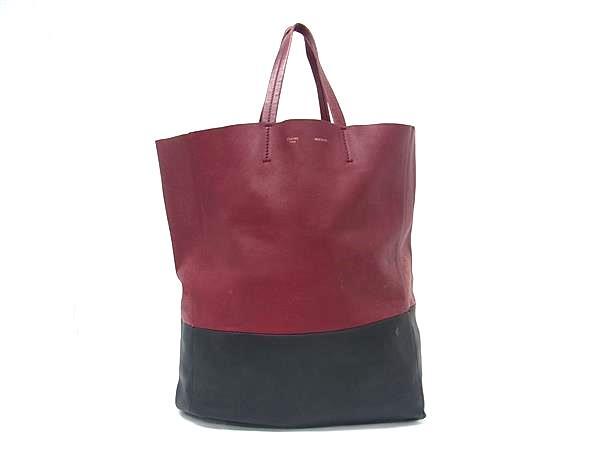 > 1円 CELINE セリーヌ ホリゾンタルカバ レザー ハンドバッグ トートバッグ レディース メンズ ボルドー系×ブラック系 GB2375