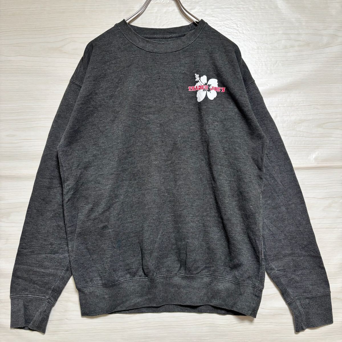 > VINTAGE ヴィンテージ スウェット トレーナー ハイビスカスプリント クルーネック サイズM ダークグレー コットン メンズ トップス(40)