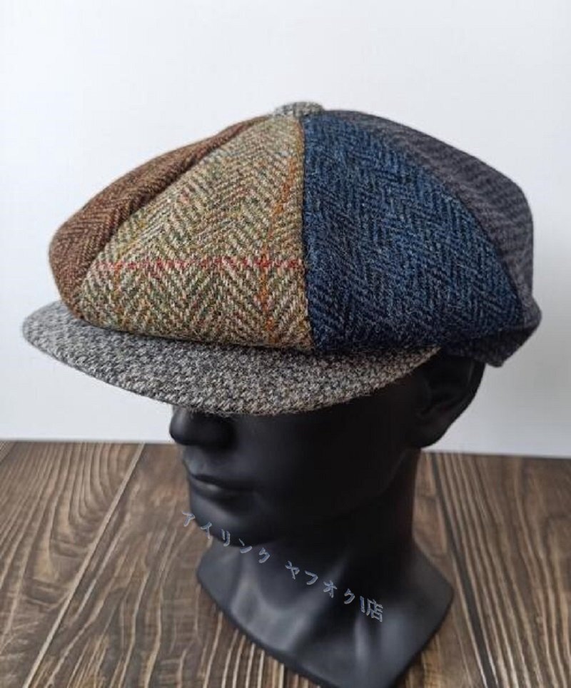 > ◆新品クラシック!サイズ XL 高級ツイード ヘリンボン ランダム パッチワーク オールドキャスケット 大きいサイズ ヴィンテージ 60cm 61cm