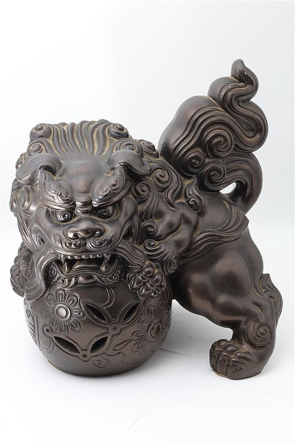 - 獅子玉取り 置物 魔除け 阿吽 鋳物風 インテリア 彫刻 風水ブロンズ調装飾 美術工芸 約2.7kg 2fety618