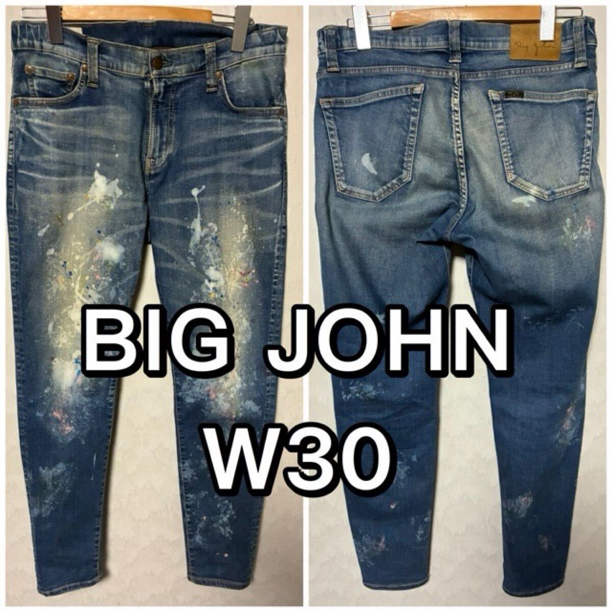 - BIGJOHN ビッグジョン W30 デニム スキニー ジーンズ ペンキ