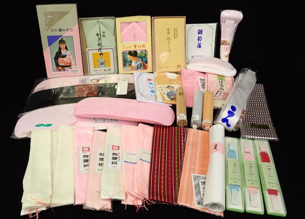 - ▲和装小物 まとめて▲未使用多数/博多織/コーリンベルト/腰紐/伊達締め/重ね襟/比よく衿/えり芯/前板/半衿/着物/消費税0円