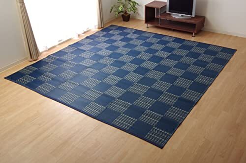 - イケヒコ ラグ カーペット 畳 マット 肌触りが良い 正方形 国産 日本製 ウィード PP ネイビー 江戸間2畳約 174×174cm 傷がつき