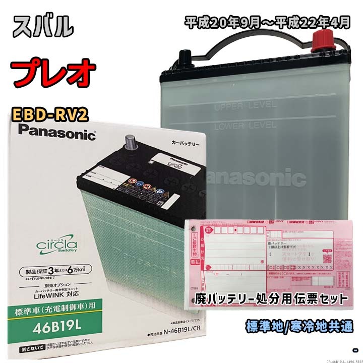 > バッテリー パナソニック N-46B19L/CR 廃バッテリー回収サービス付 スバル プレオ EBD-RV2 平成20年9月~平成22年4月 対応 B19L 互換 1496