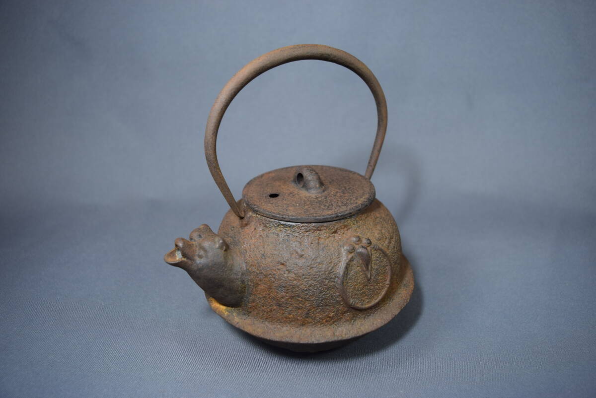 - 南部 岩鋳 狸形 鉄瓶 囲炉裏 火鉢 瓶掛 湯沸 茶道具 鉄壺 南部鉄器 検索 分福茶釜 煎茶器 急須 酒器 熱燗 鉄銚子
