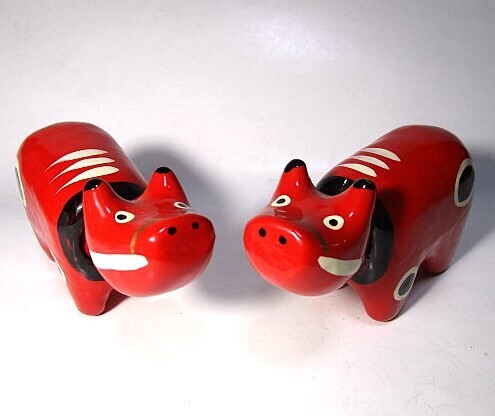 - 美品 アンティーク★首振り 赤べこ 張子 会津 郷土玩具 縁起物 赤ベコ 張り子人形 民芸品 伝統工芸 置物 飾り物 インテリア 2個★
