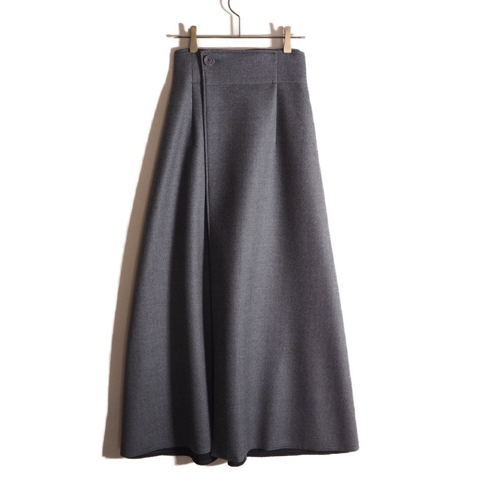 - R0292H2 ▼ETRE TOKYO エトレトウキョウ▼ ボンディング ラップスカート グレー S/w60 ウール ストレッチ マキシ丈 ロングスカート 秋冬