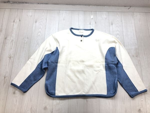 - REGULEE by LA SEINE オールド レトロ 90s 古着 レディース ヘンリーネック プルオーバー フライス カットソー トップス 綿100% M 白 青
