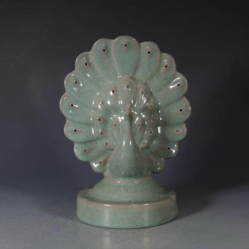 - 宋代 古陶磁器 汝窯 青釉 孔雀開屏 瓷器 古擺件 置物 時代物 古董品 骨董 旧家蔵出し 唐物 中国古玩 古美術品