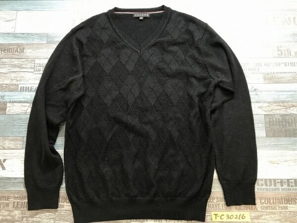 - VILLAND ビランド しまむら メンズ Vネック アーガイル柄 ウール アクリルニットセーター M 黒