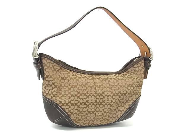> 1円 ■美品■ COACH コーチ 6351 ミニシグネチャー キャンバス×レザー ハンドバッグ ショルダー 肩掛け ブラウン系 BS1119