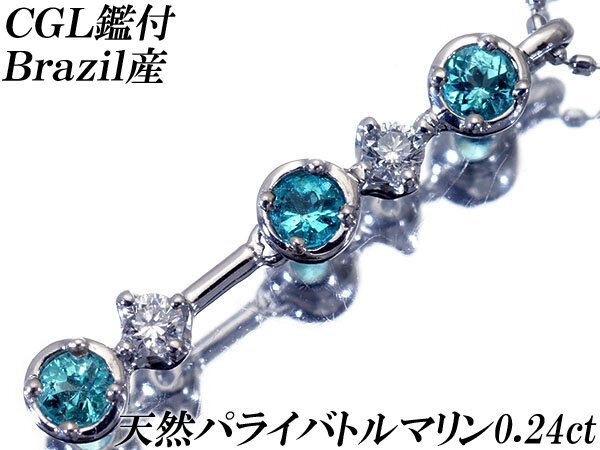 > 【ジュエリー極】CGL鑑 ブラジル産 極上天然パライバトルマリン0.24ct&ダイヤ0.09ct 超高級Pt900&Pt850ネックレス h7976rl【送料無料】