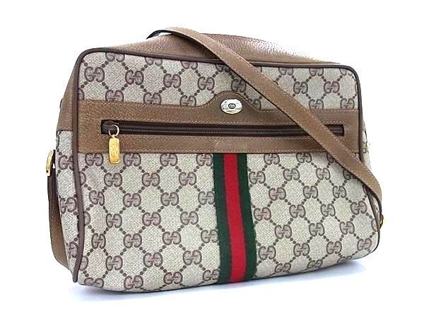 - 1円 ■美品■ GUCCI オールドグッチ ヴィンテージ 63 02 005 GG柄 シェリーライン PVC クロスボディ ショルダーバッグ アイボリー系 FV3821