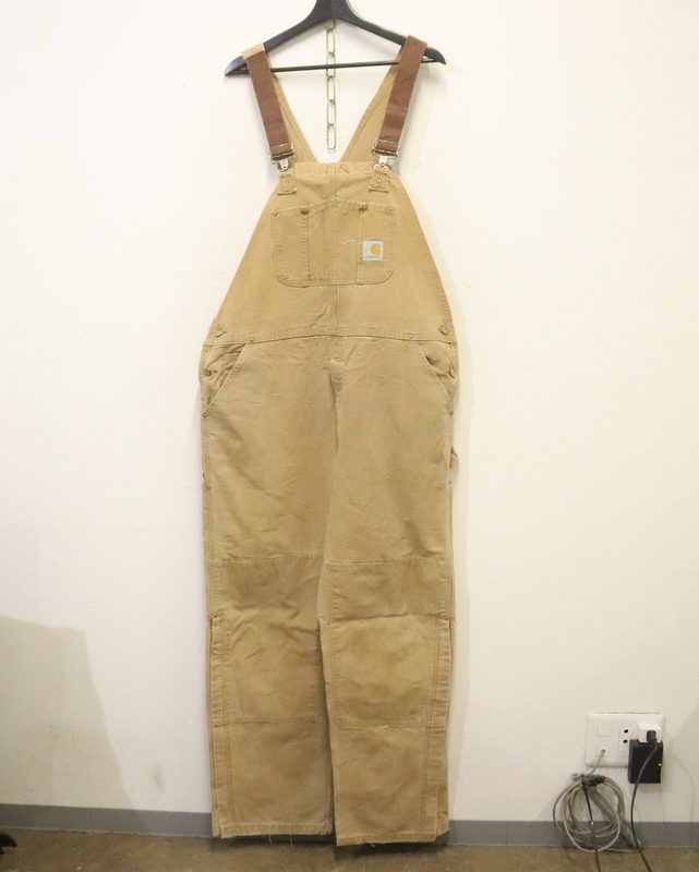 - h888 2003年製ビンテージ カーハート Carhartt ダブルニー ダックオーバーオール USA製■00s 表記W42L32 ブラウン ワーク サロペット BRN