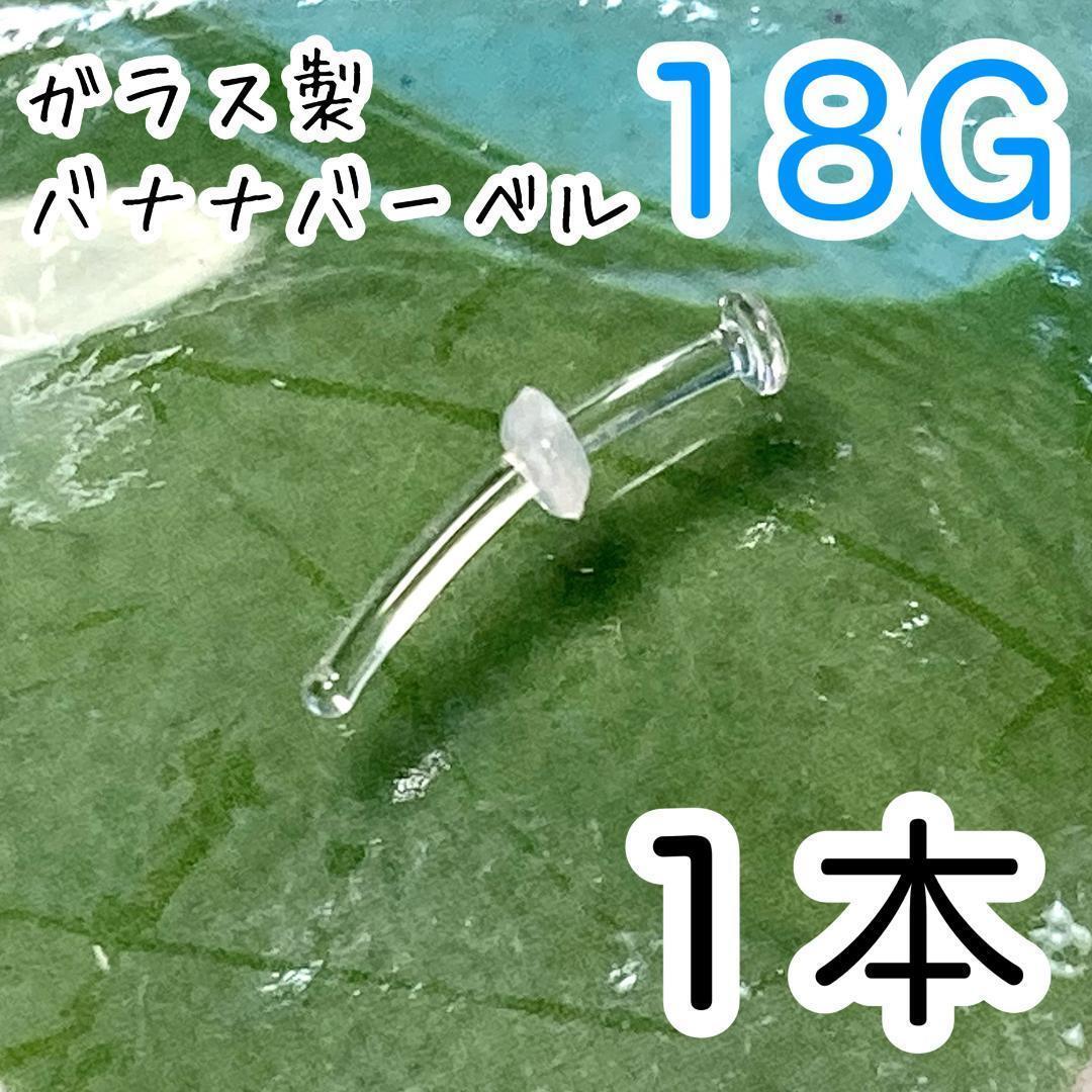 - ガラス製 18G 透明バナナバーベルピアス 透ピ アレルギーフリー カーブピアス
