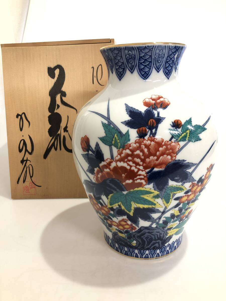 - HB5259 明陶 花瓶 壺 花図 花挿 花入 花生 花活け インテリア フラワーベース