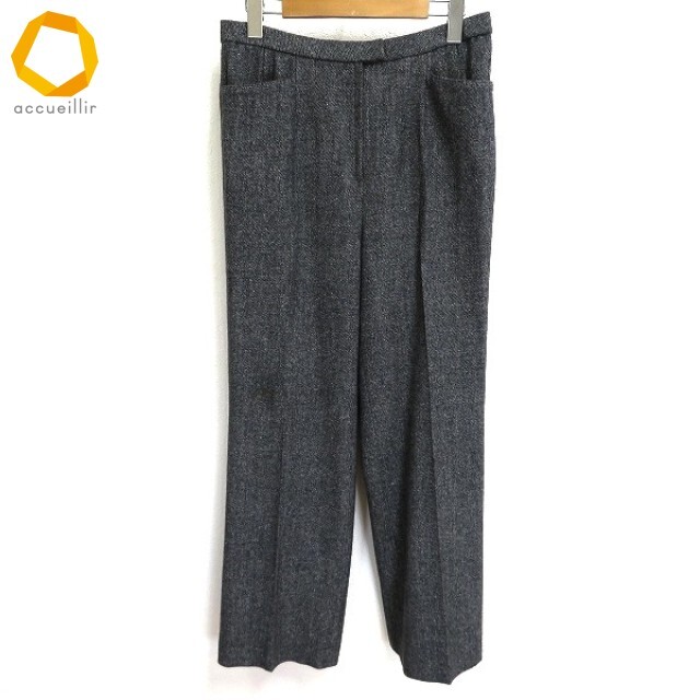 - #w レリアン Leilian パンツ 13号 グレー ミックス ウール 毛 センタープレス 大きいサイズ 総ゴム 日本製 レディース [972640] k01
